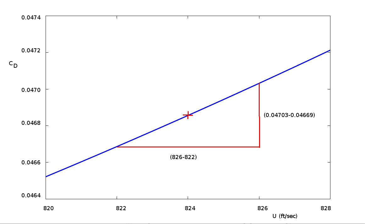 $$C_{D_U}=(0.04703-0.04669)/(826-822)= 0.000085$$