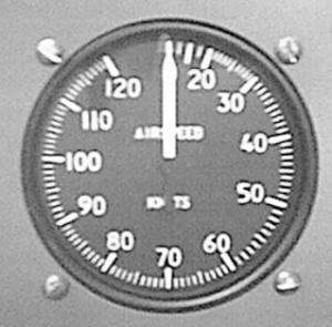 The instrument only measures speed relative to the surrounding air so actual ground speed will need to be calculated based on prevailing wind conditions. The instrument shown gives a reading of indicated airspeed in knots (nautical miles per hour). Click in the image of this instrument to see a schematic diagram showing its operation.
