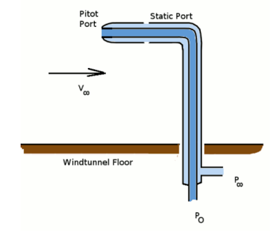 The airspeed of an aircraft can be obtained from the difference between atmosphere static pressure and the measured total pressure from a pitot tube placed in the airflow. The two pressures required come from lines to the Static Port and an second to the Pitot Port. The difference between these pressures is the dynamic pressure created by the motion of the vehicle through the air.
