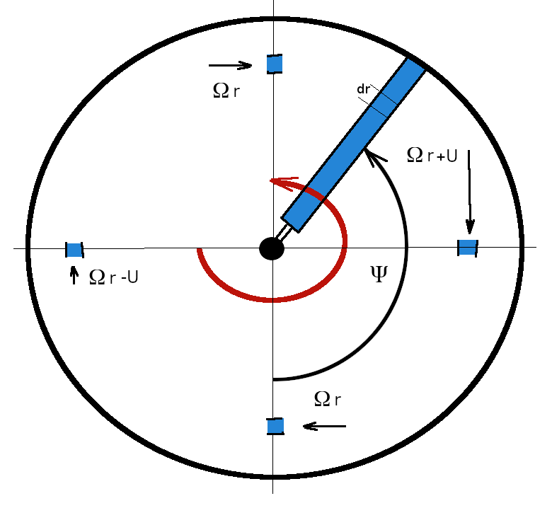 where $V_{local} $ is local chordwise velocity magnitude at radius r and sector $ Ψ $ location.
