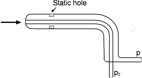 For an accurate determination of flow speed, static and stagnation pressures need to be measured simultaneously and in close proximity. This is made possible by a Pitot-Static tube shown in Fig. 15. This combines the static pressure probe and the pitot tube. The "static holes" and the "stagnation hole" are as near to each other as possible.