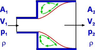$$P_{01}-P_{02}=ρV_1^2/2((A_1/A_2)-1)^2$$