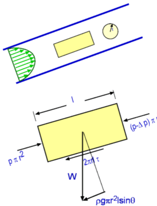 $$ΔPπR^2+γπR^2L\sin(θ)-τ_w2πRL=0$$