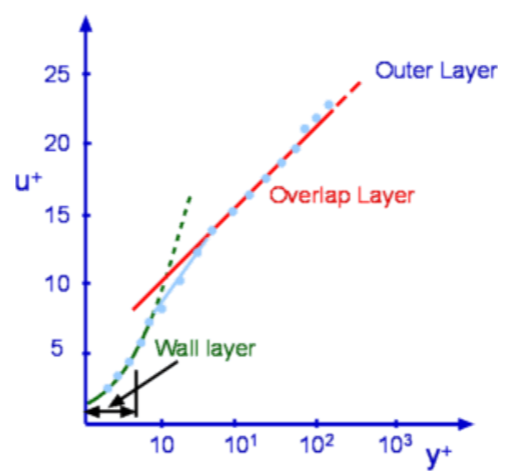 $$u^{+}=1/κ\ln(y^{+})+B$$