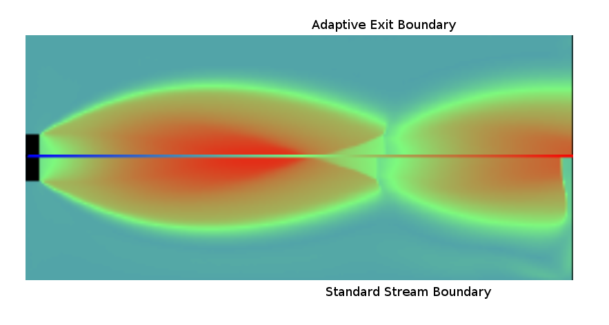 Where there are stream boundaries, incoming or outgoing, a specified number of molecules will be introduced at random along the boundary and at random points in the time interval. The number and speed of molecules entering via a stream boundary is predicted using a skewed gaussian distribution based on flow entry or exit speed,