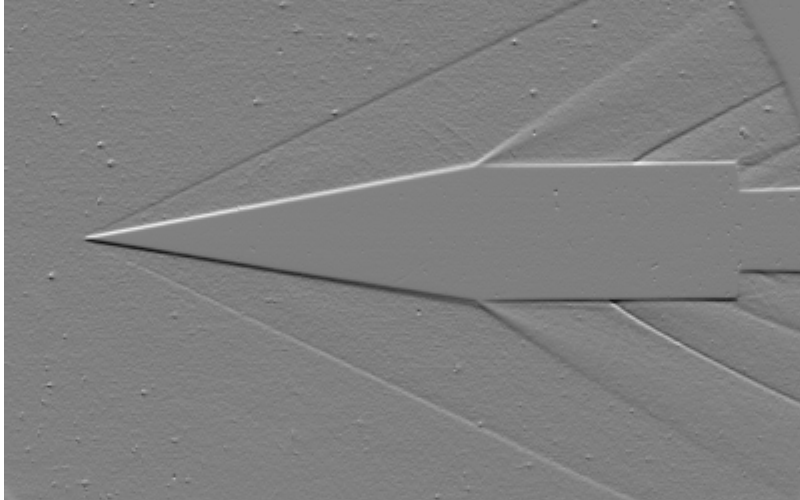 Supersonic flow can be visualised using a Schlieren optical system. This system highlights regions with high density gradients in the flow and will thus show shock waves and expansion waves. Images can be further enhanced by using digital picture edge detection methods or methods of enhancing intensity gradients.