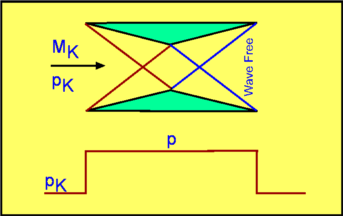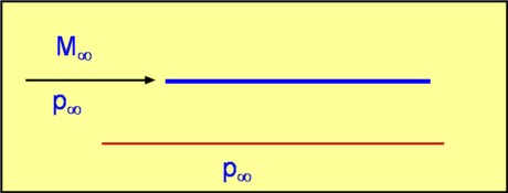 Consider a thin flat plate placed in a supersonic stream as shown in Fig. 43. For a zero angle of attack, there is no flow turning anywhere on the flat plate. Consequently the pressure is uniform on both upper and lower surfaces. Drag and lift are both zero. (Note : this method ignores friction losses).