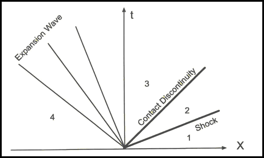 A shock tube essentially consists of a high pressure gas region initially separated form a low pressure gas region by a thin diaphragm. The chamber containing the high pressure gas (region 4) is called a Driver Gas and the one containing the low pressure gas (region 1) is called the Driven gas.