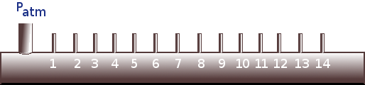 Click on the valve's Open/Close arrows to release or stop flow in the nozzle. Pressures will be shown on the manometers below. Or return to the Nozzle Experiment main page. |