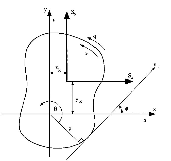 $$ Σ M_z \text" --> " S_yx_R - S_x y_R = ∮ qp.ds $$Substituting the initial definition into the above three equations and assuming the shear modulus to be constant over the beam's cross section gives: