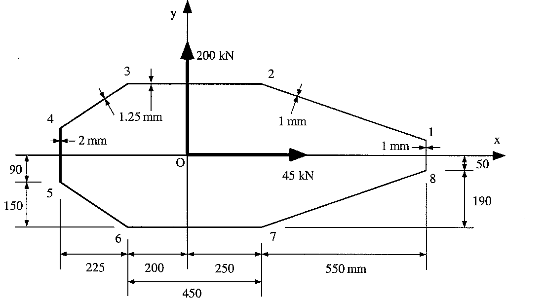 1)Sketch on each skin/web an assumed direction for the shear flow