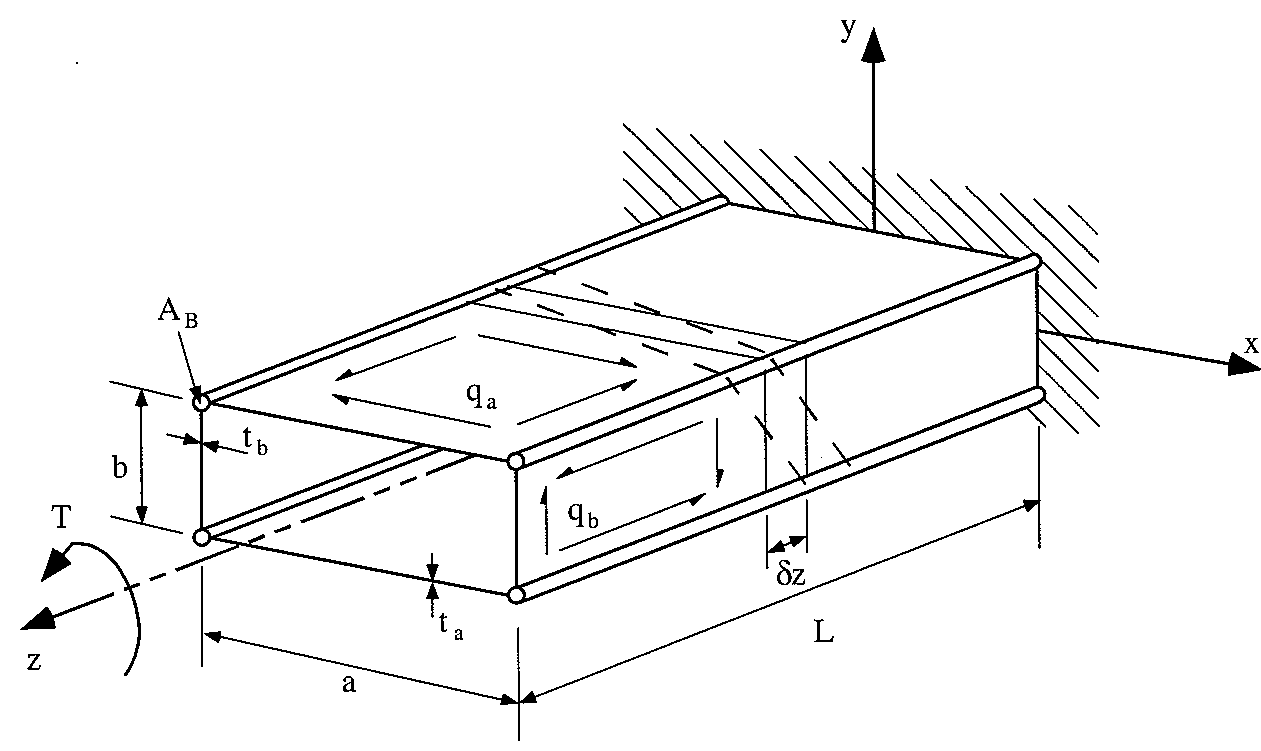 $$ q_a = Gt_a( -2w/a + b/2 {dθ}/{dz} ) $$and for the side webs: