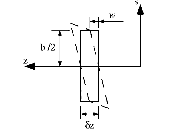 $$ q = Gt ( {∂w}/{∂s} + {∂v_t}/{∂z} ) $$Because the cross-section of the beam is doubly symmetrical, the shear centre coincides with the centre of symmetry, so the equation reduces to: