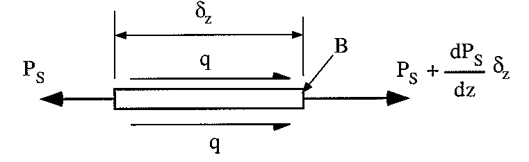 $$ Σ F_z = 0 = -P_B + P_B + {∂P_B}/{∂z} δz - q δz $$which when simplified gives: