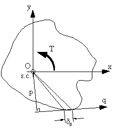 The torque produced by the shear flow on element δs is pqsδs. Integrating about the whole section gives: