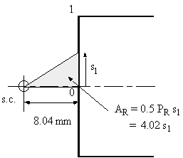 $$ A_R = 1/2 ∫_0^s p_R .ds $$Because the section is symmetrical, at 0, s1 = 0, w = 0. Therefore, between 0 and 1: