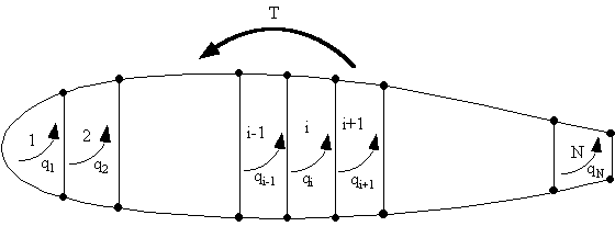 $$ T = T_1 + T_2 + ... + T_N = Σ_{i=1}^N T_i $$But a torque in a closed cell (beam section) produces a constant shear flow, given by :