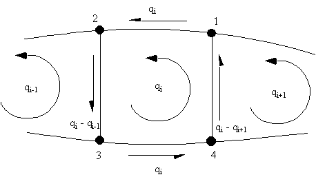$$ {dθ}/{dz} = 1/{2A_i} ( -q_{i-1} Δ_{2-3} + q_i (Δ_{1-2} +Δ_{2-3} + Δ_{3-4} + Δ_{4-1} ) - q_{i+1} Δ_{4-1} ) $$and in general terms for the configuration of Figure 82, the rate of twist equation for cell i becomes: