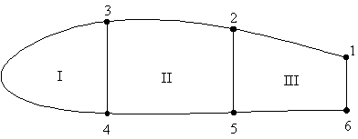 Figure 92: Three cell wing section cut to determine open beam shear flows |