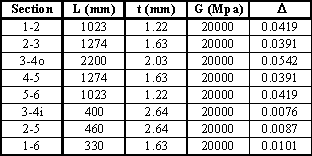 $$ Δ = ∫_L 1/{Gt}.ds = {\text"Length of wall"}/{\text"Shear Modulus " × \text" thickness of wall" } $$It is now necessary to determine the rate of twist for cell i giving: