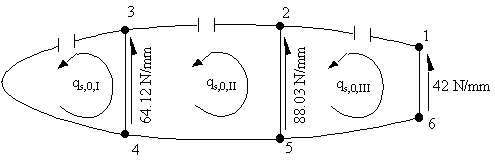qs0I = - 38.31 N/mm, qs0II = -43.61 Nm and qs0III = -17.93 N/mm