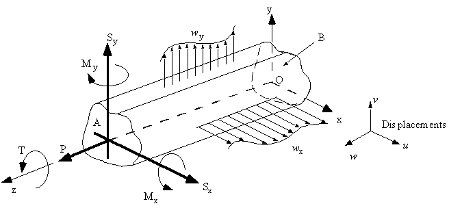 u,v,w = Axial displacements