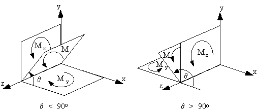 RESOLUTION OF BENDING MOMENTSA bending moment M applied in any plane parallel to the z-axis can be resolved into Mx and My components by normal vector rules.