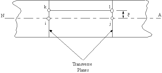 $$σ_z = E ε_z$$Look at the beam in a plane parallel to the neutral axis with two segments ij and kl which are of equal length when the beam is undeflected: