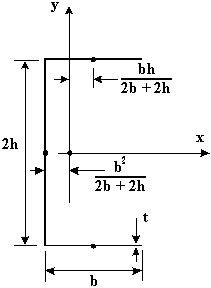 $$ I_{yy} = 2 {tb^3}/{12} + 2tb ({hb}/{2b + 2h})^2 + 2ht ( {b^2}/{2b + 2h})^2$$This indicates that the sectional properties may be calculated as if the section was represented by a thin line, as shown in Figure 18, disregarding any t2 or higher terms.